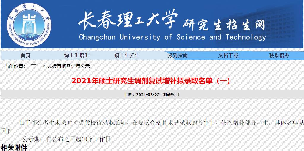 以上就是“2021考研擬錄取名單:長(zhǎng)春理工大學(xué)2021年碩士研究生調(diào)劑復(fù)試增補(bǔ)擬錄取名單(一)”的全部?jī)?nèi)容,更多錄取名單相關(guān)內(nèi)容點(diǎn)擊2021考研擬錄取名單:全國(guó)各大院校2021年碩士研究生擬錄取名單匯總!查看詳情!