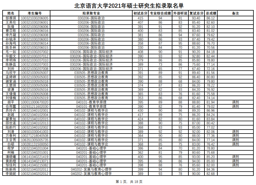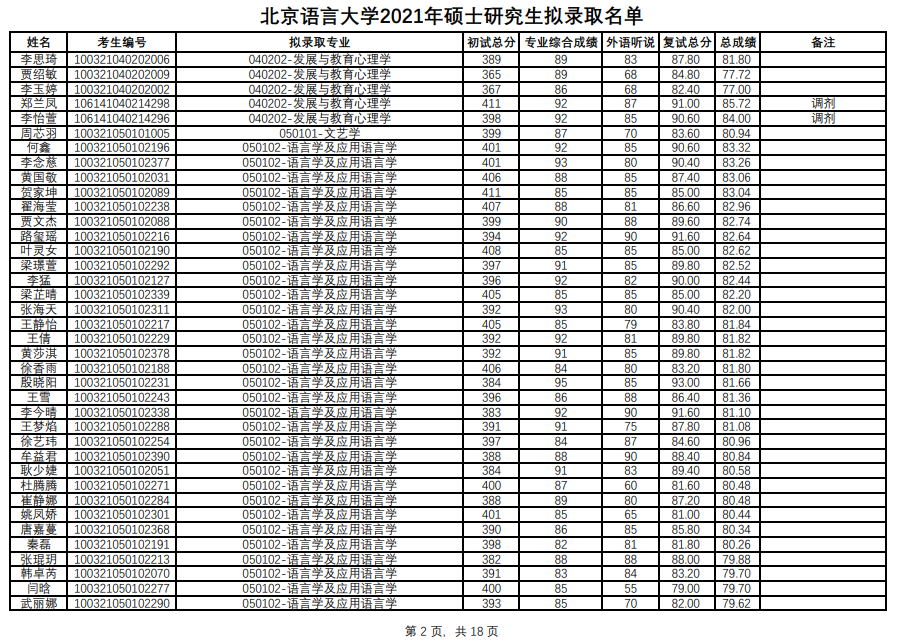 原文標(biāo)題:北京語言大學(xué)2021年碩士研究生擬錄取名單