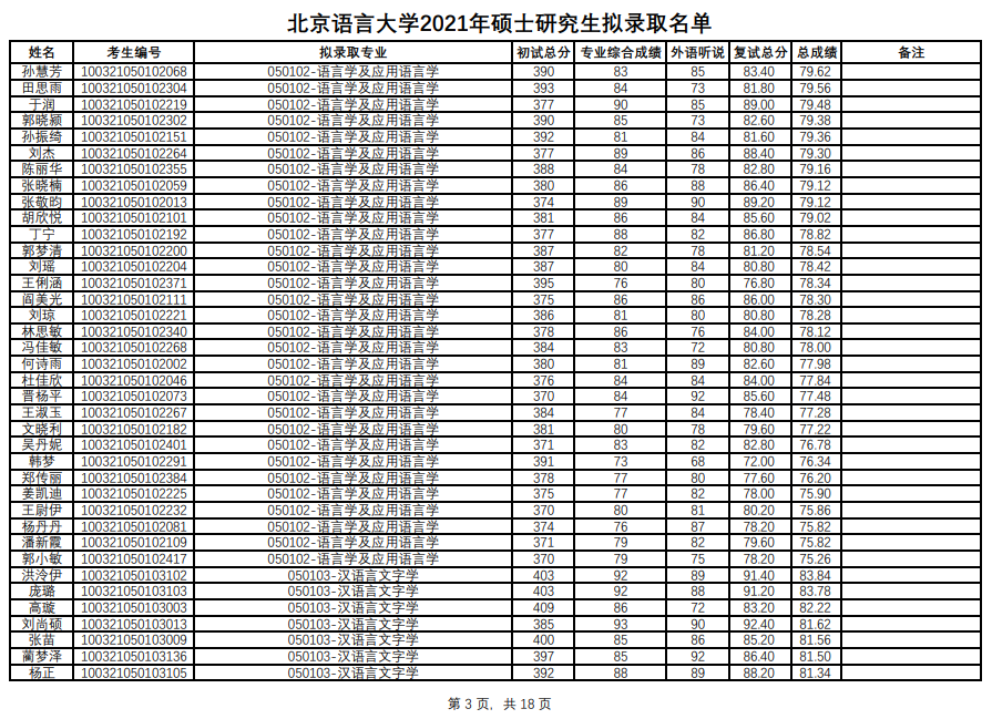 完整名單請(qǐng)點(diǎn)擊查看:北京語言大學(xué)2021年碩士研究生擬錄取名單