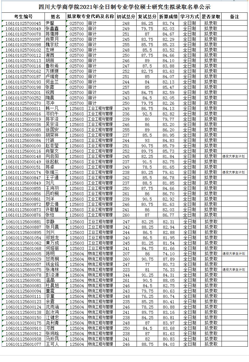 2021考研擬錄取名單:四川大學(xué)商學(xué)院2021年碩士研究生擬錄取名單(全日制專業(yè)型)