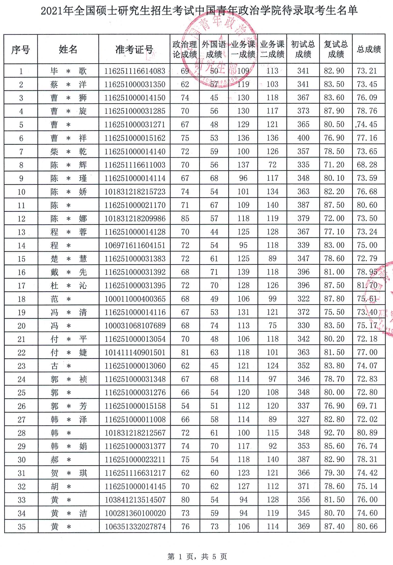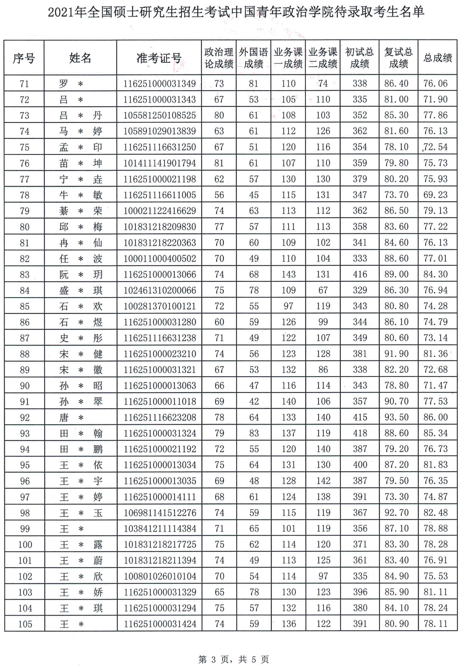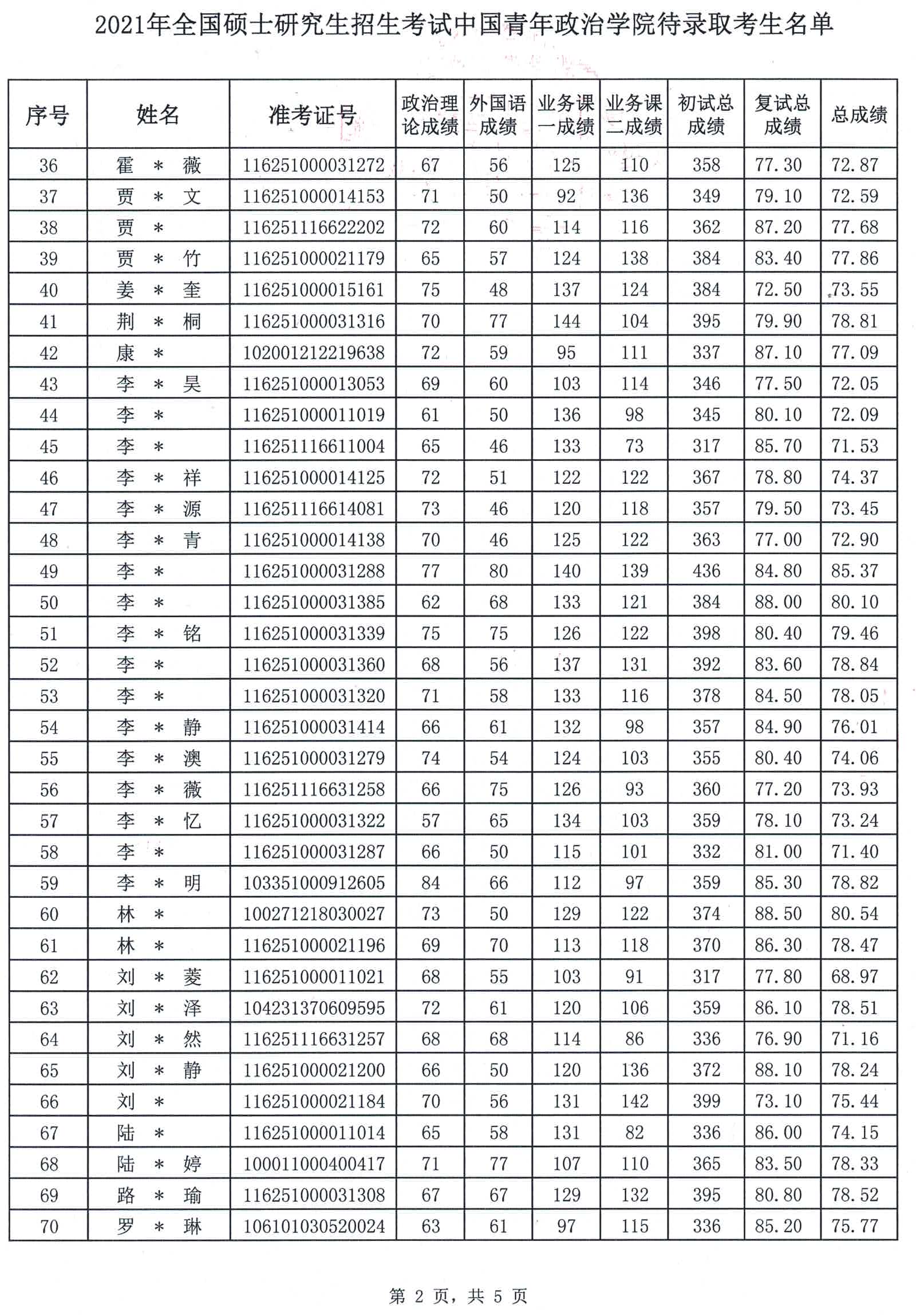 原文標(biāo)題:2021年全國(guó)碩士研究生招生考試中國(guó)青年政治學(xué)院待錄取考生名單