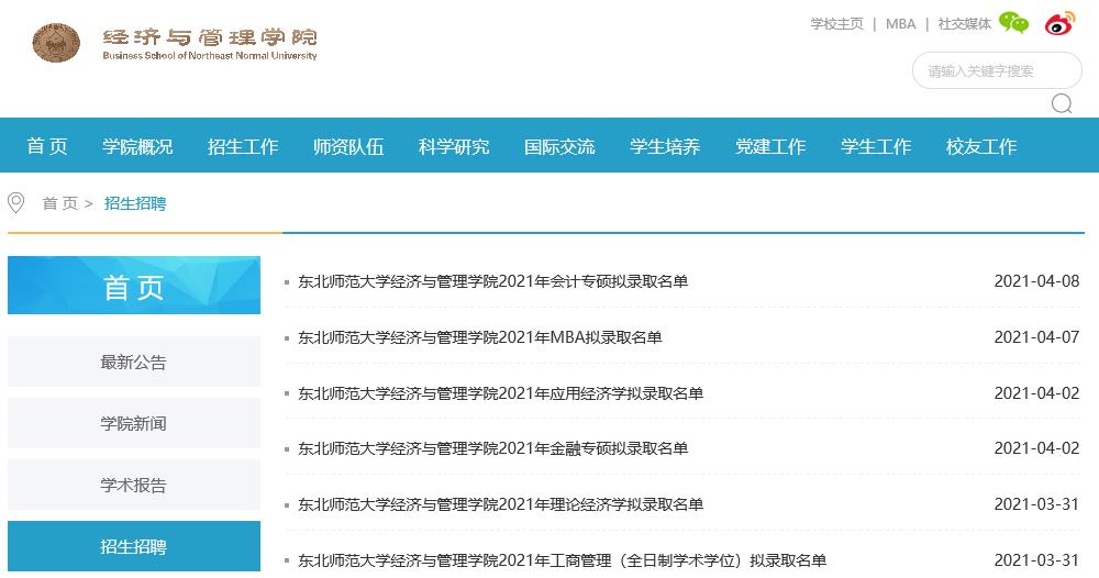 以上就是“2021考研擬錄取名單:東北師范大學(xué)經(jīng)濟(jì)管理學(xué)院2021年碩士研究生擬錄取名單”的全部內(nèi)容,更多錄取名單相關(guān)內(nèi)容點擊2021考研擬錄取名單:全國各大院校2021年碩士研究生擬錄取名單匯總!查看詳情!