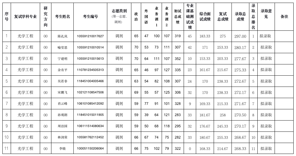 原文標題:光學工程學位點佛山科學技術學院2021年碩士研究生復試錄取結果(第一批調劑)