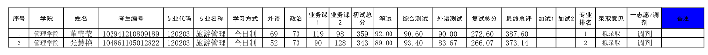 原文標(biāo)題:中南民族大學(xué)管理學(xué)院2021旅游管理碩士研究生調(diào)劑擬錄取名單