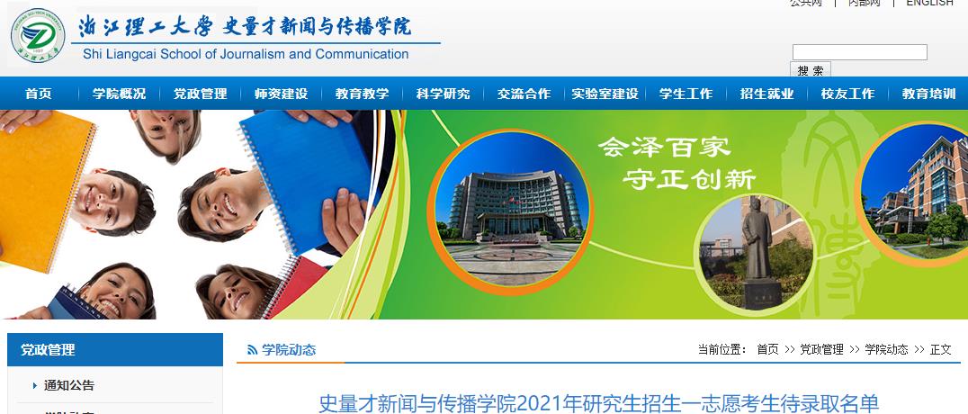 2021考研擬錄取名單:浙江理工大學史量才新聞與傳播學院2021年研究生招生一志愿考生待錄取名單