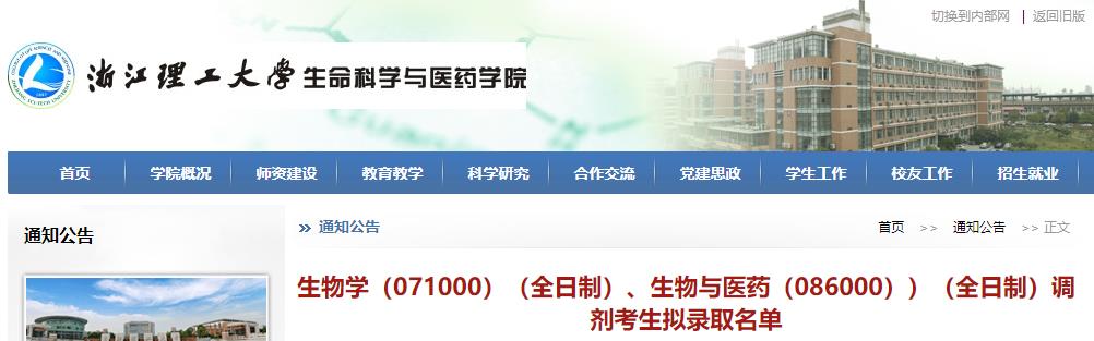 2021考研擬錄取名單:浙江理工大學(xué)生命科學(xué)與醫(yī)藥學(xué)院2021年研究生招生調(diào)劑考生待錄取名單”的全部內(nèi)容,更多錄取名單相關(guān)內(nèi)容點擊