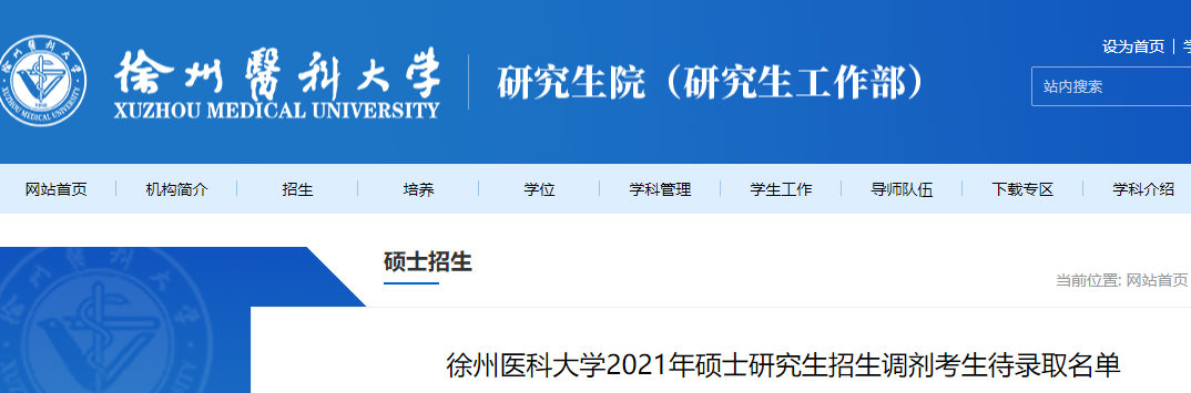 以上就是“2021考研擬錄取名單:徐州醫(yī)科大學2021年碩士研究生招生調劑考生待錄取名單”的全部內容,更多錄取名單相關內容點擊2021考研擬錄取名單:全國各大院校2021年碩士研究生擬錄取名單匯總!查看詳情!