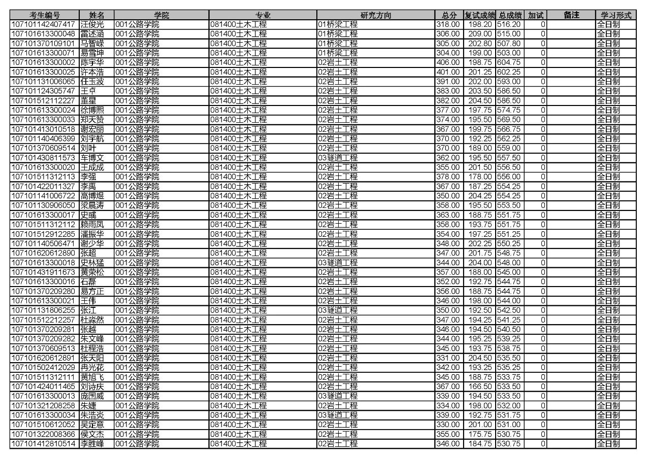 注:1、名單為第一志愿報考我校且復試結果為”擬錄取” 資格的考生。