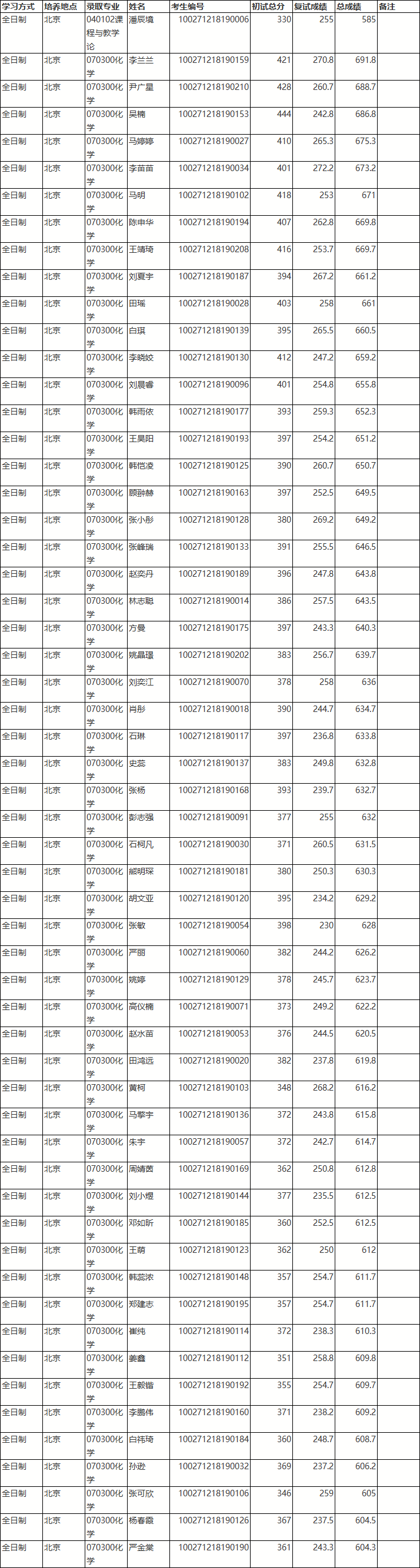 以上就是“2021考研擬錄取名單:北京師范大學化學學院2021年擬錄取碩士研究生名單公示”的全部內容,更多錄取名單相關內容點擊2021考研擬錄取名單:全國各大院校2021年碩士研究生擬錄取名單匯總!查看詳情!