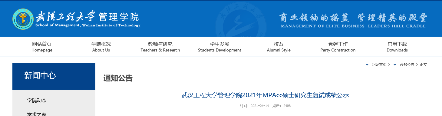 點(diǎn)擊查看:武漢工程大學(xué)管理學(xué)院2021年MPAcc碩士研究生復(fù)試成績(jī)公示