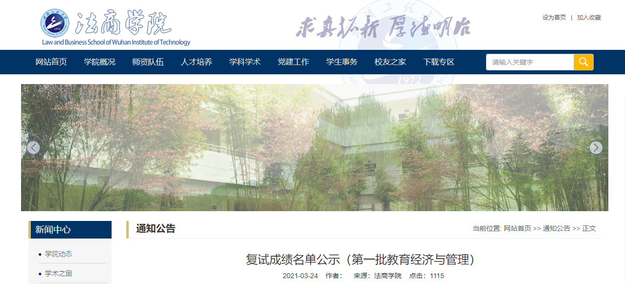 點擊查看:2021考研擬錄取名單:武漢工程大學法商學院2021年第一批教育經濟與管理碩士復試名單成績公示