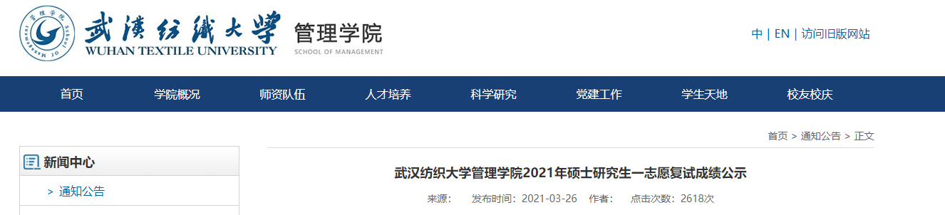 點擊查看:武漢紡織大學管理學院2021年碩士研究生一志愿復試成績公示