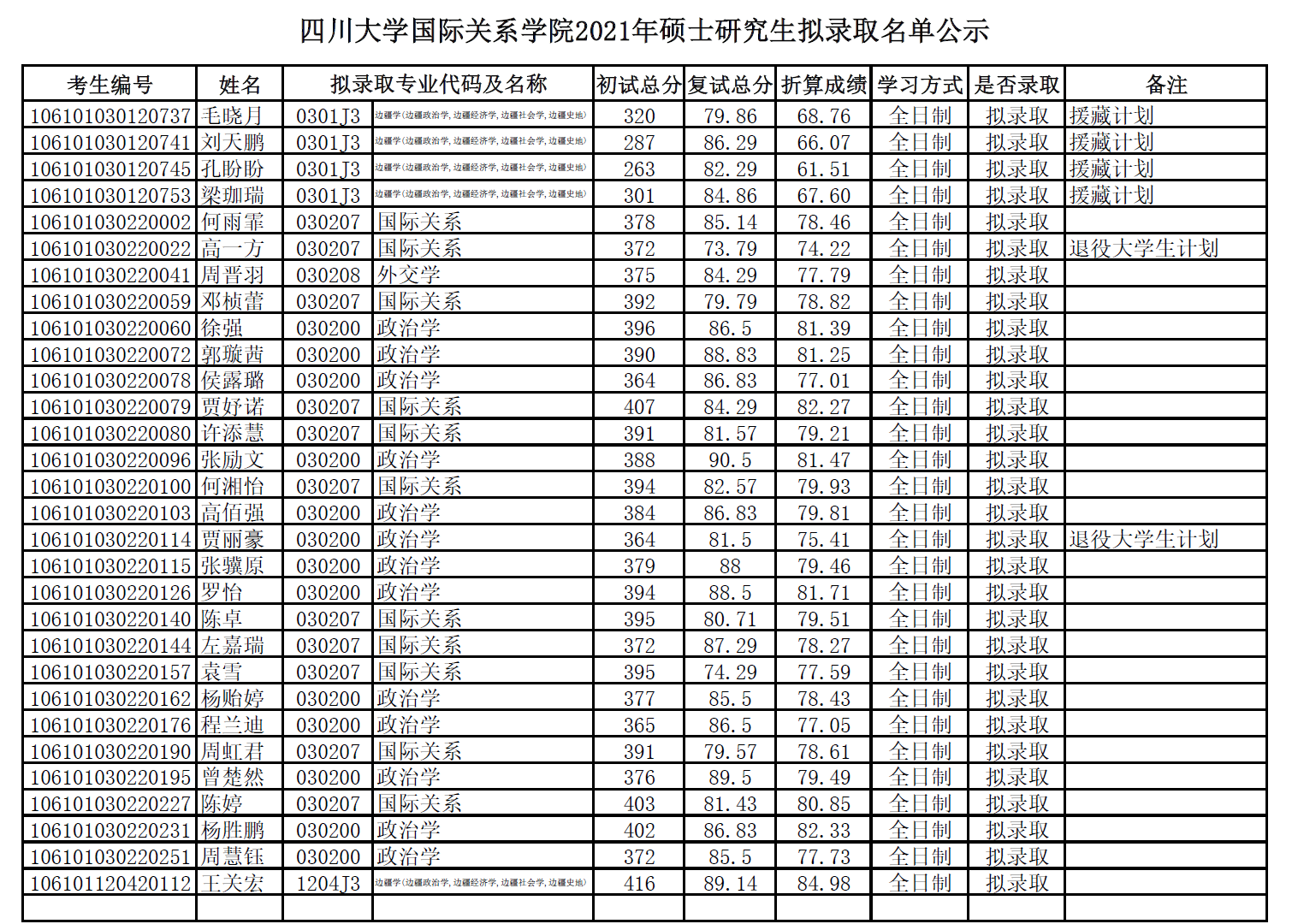 原文標題:四川大學國際關系學院2021年碩士擬錄取名單公示