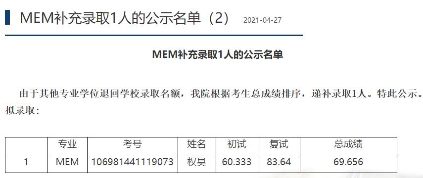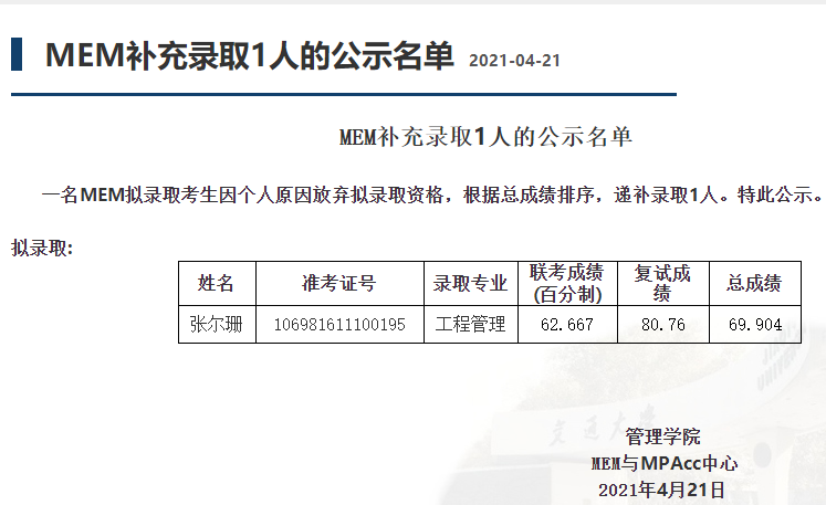 原文標(biāo)題:西安交通大學(xué)2021年MEM擬錄取名單