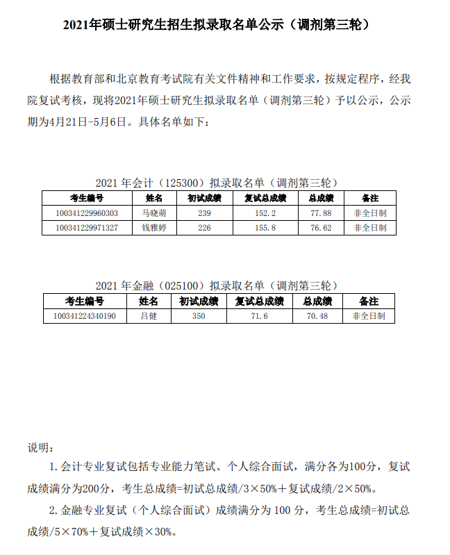 以上就是“2021考研擬錄取名單:北京國家會計學院2021年碩士研究生招生擬錄取名單公示(調劑第三輪)”的全部內容,更多錄取名單相關內容點擊2021考研擬錄取名單:全國各大院校2021年碩士研究生擬錄取名單匯總!查看詳情!