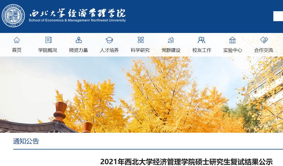 原文標題:2021年西北大學經濟管理學院碩士研究生復試結果公示