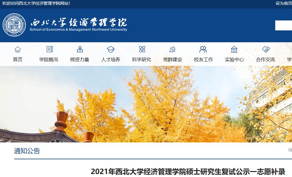 以上就是“2021考研擬錄取名單:2021年西北大學經濟管理學院碩士研究生復試公示一志愿補錄”的全部內容,更多錄取名單相關內容點擊2021考研擬錄取名單:全國各大院校2021年碩士研究生擬錄取名單匯總!查看詳情!