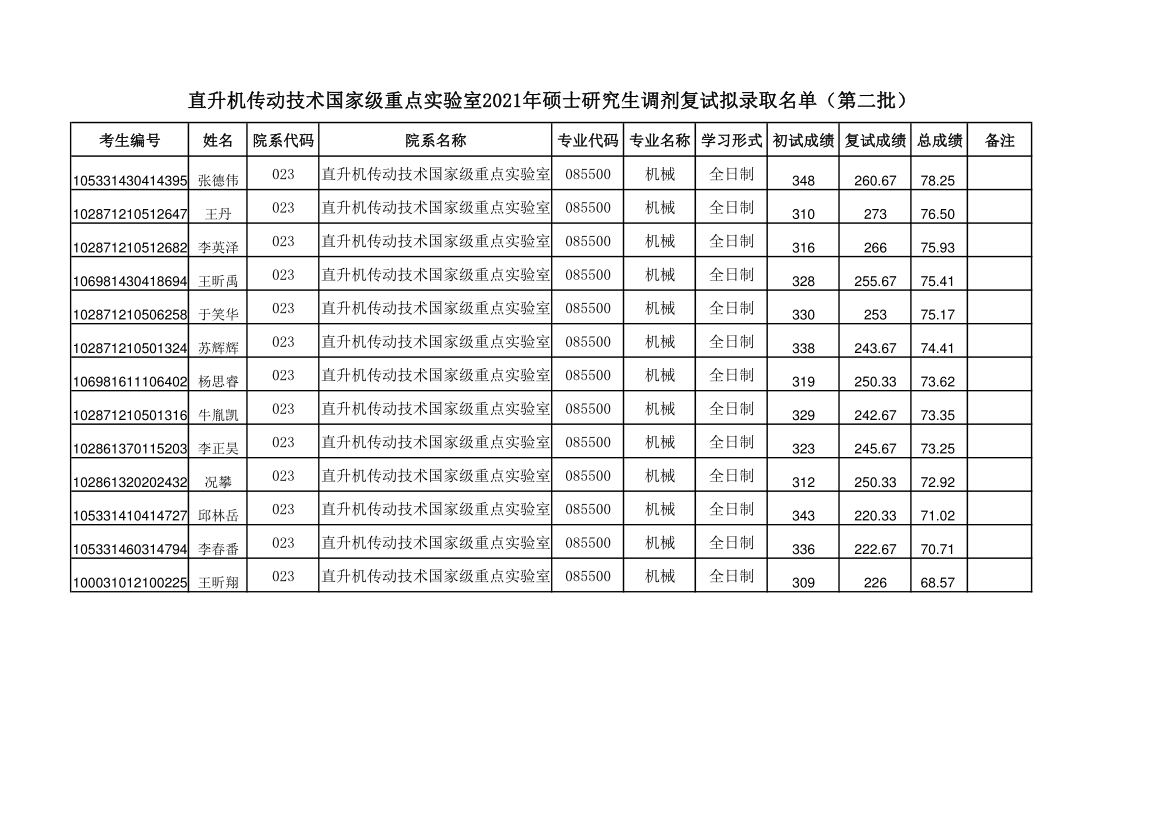 原文標題:直升機傳動技術國家級重點實驗室2021年碩士研究生調劑復試擬錄取名單(第二批)