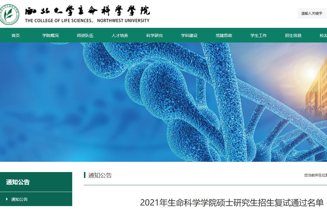 以上就是“2021考研擬錄取名單:西北大學2021年生命科學學院碩士研究生招生復試錄取名單”的全部內容,更多錄取名單相關內容點擊2021考研擬錄取名單:全國各大院校2021年碩士研究生擬錄取名單匯總!查看詳情!