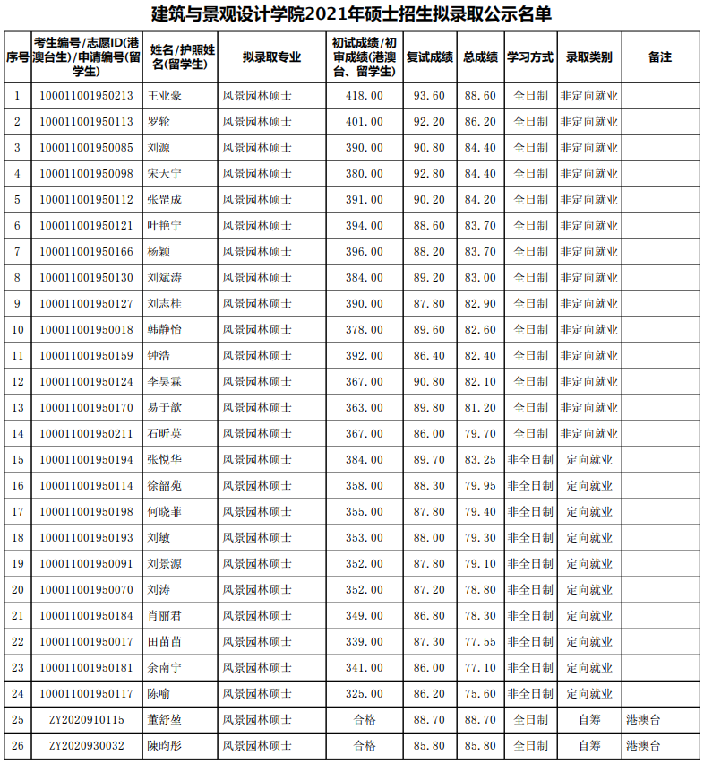 原文標題:建筑與景觀設計學院2021年碩士招生擬錄取公示名單