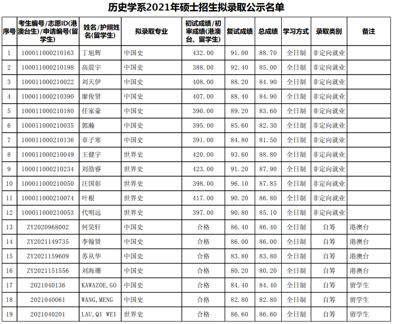 原文標(biāo)題:歷史學(xué)系2021年碩士招生擬錄取公示名單