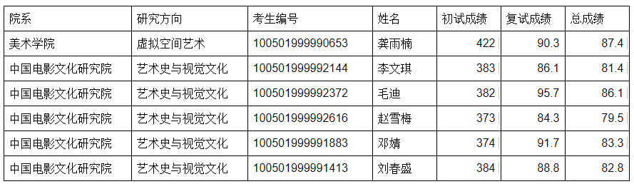 我校擬錄取以下考生(調劑考生)為北京電影學院2021級碩士研究生,現予以公示,公示時間為十個工作日。