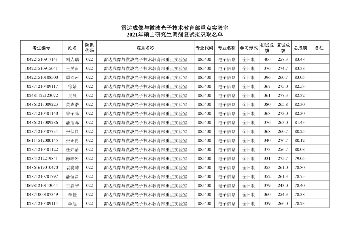原文標(biāo)題:雷達(dá)成像與微波光子技術(shù)教育部重點(diǎn)實(shí)驗(yàn)室2021年碩士研究生調(diào)劑復(fù)試擬錄取名單