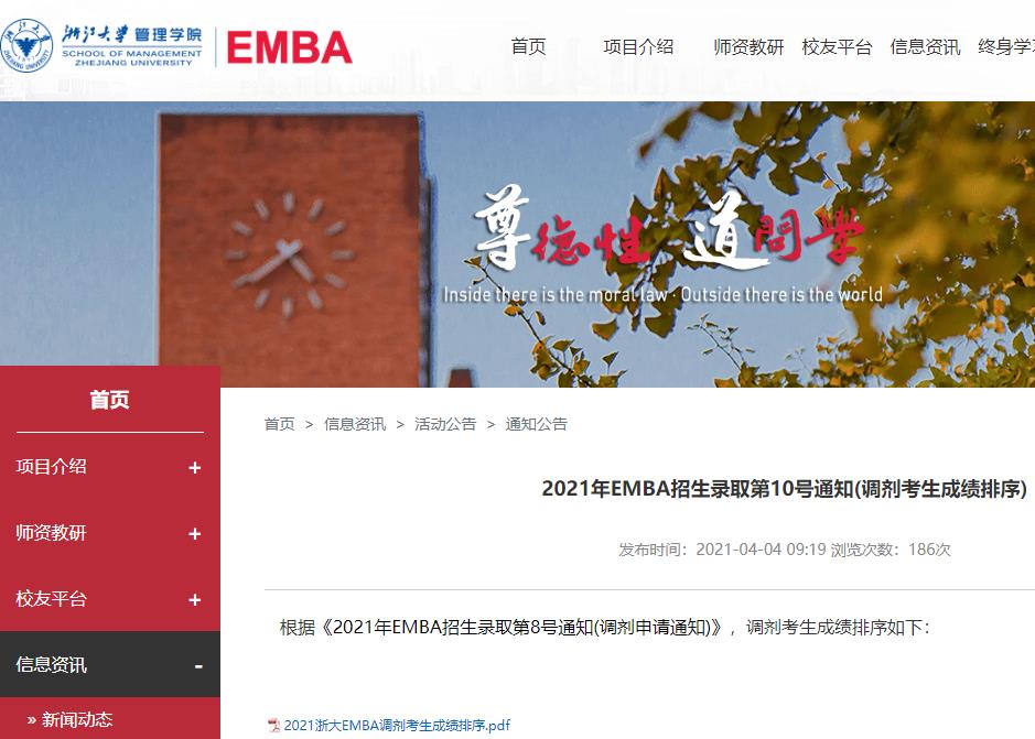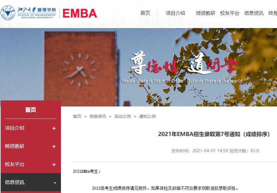 2021考研擬錄取名單:浙江大學EMBA2021年碩士招生成績排序及擬錄取情況公示