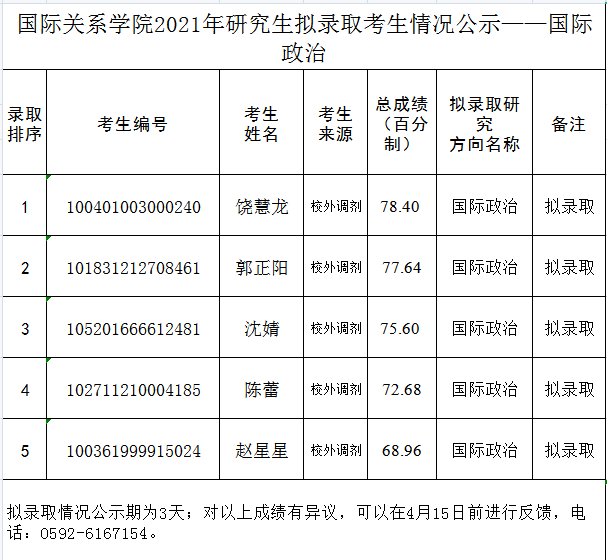 原文標題:華僑大學國際關系學院2021年研究生擬補錄取情況公示