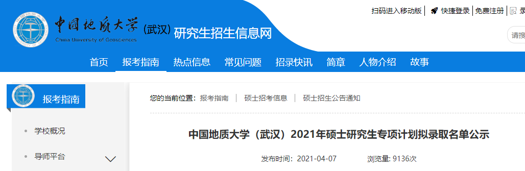 原文標(biāo)題:中國(guó)地質(zhì)大學(xué)(武漢)2021年碩士研究生專項(xiàng)計(jì)劃擬錄取名單公示