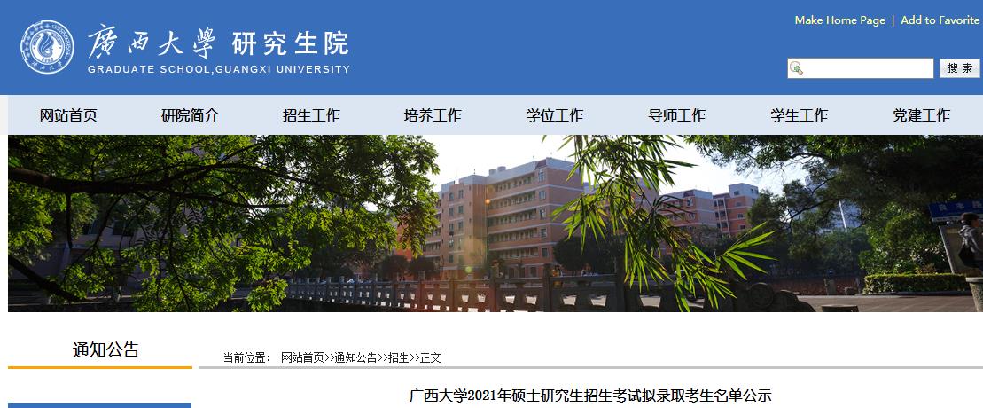 以上就是“2021考研擬錄取名單:廣西大學2021年碩士研究生擬錄取名單公示”的全部內容,更多錄取名單相關內容點擊2021考研擬錄取名單:全國各大院校2021年碩士研究生擬錄取名單匯總!查看詳情!