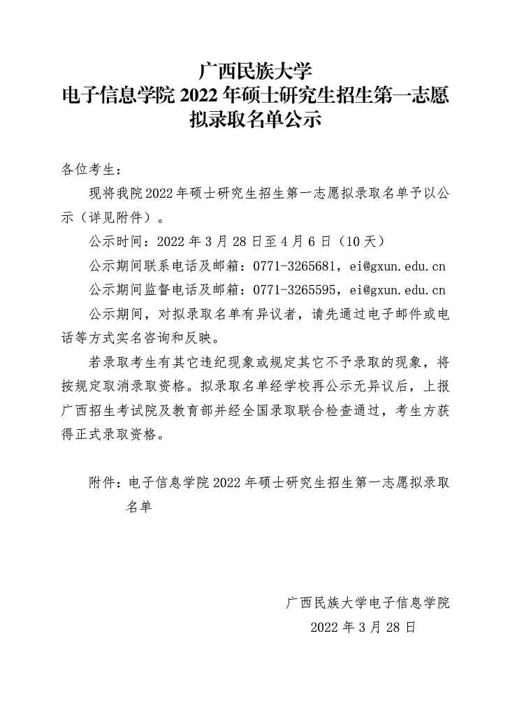 附件:廣西民族大學電子信息學院2022年碩士研究生招生第一志愿擬錄取名單公示