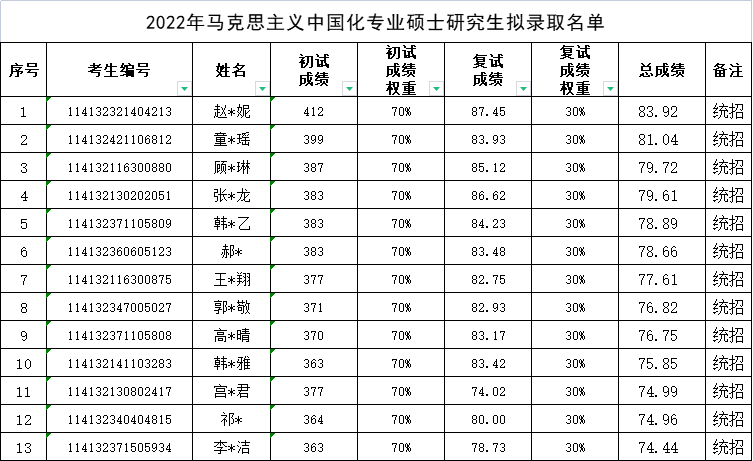 原文標(biāo)題:馬克思主義學(xué)院2022年碩士研究生擬錄取名單
