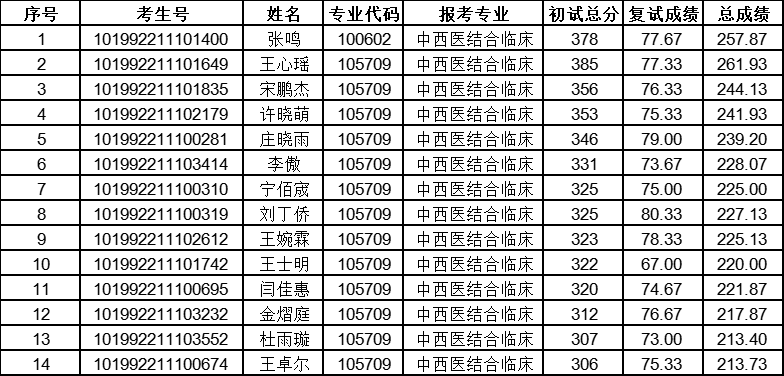 原文標(biāo)題:長春中醫(yī)藥大學(xué)2022年碩士研究生招生考試中西醫(yī)結(jié)臨床學(xué)科第一志愿考生擬錄取公示