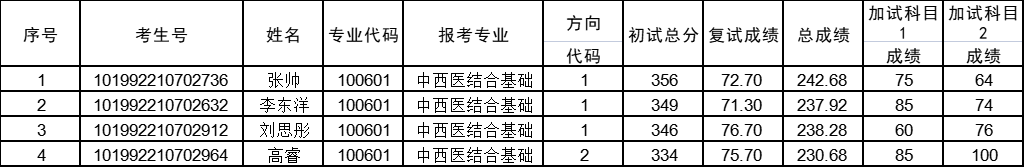 以上就是“2022考研擬錄取名單:長春中醫藥大學2022年碩士研究生招生考試中西醫結合基礎學科第一志愿考生擬錄取公示”的全部內容,更多錄取名單相關內容請持續關注本網站。