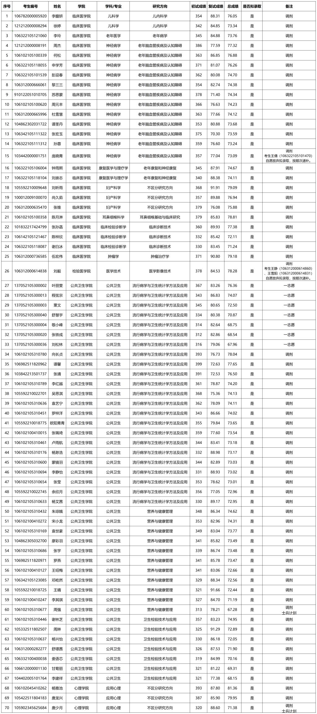 以上就是“2022考研擬錄取名單:成都醫學院2022年碩士研究生招生考試擬錄取名單(第5批)”的全部內容,更多錄取名單相關內容請持續關注本網站。