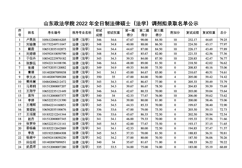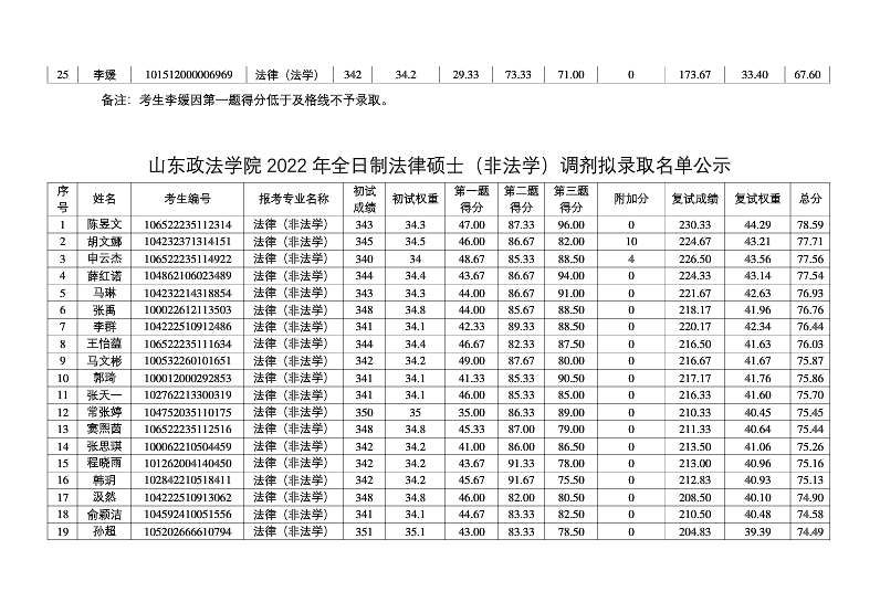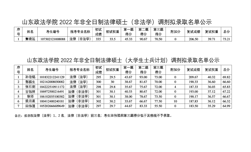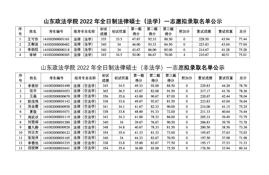 原文標(biāo)題:山東政法學(xué)院2022年法律碩士擬錄取名單公示