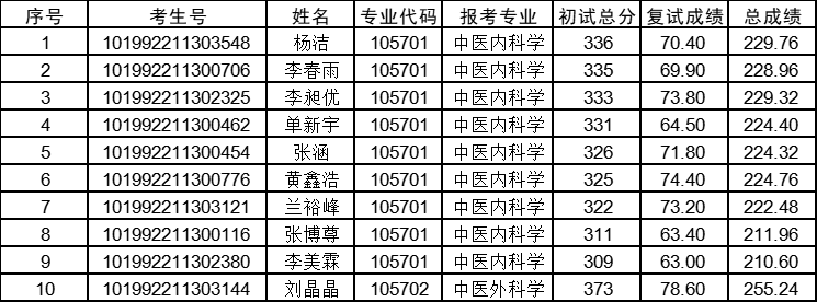 原文標題:長春中醫藥大學2022年碩士研究生招生考試中醫學院(長春市中醫院)第一志愿考生擬錄取公示