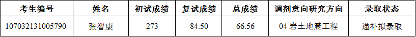 我校于4月8日公示的《防災科技學院2022年碩士研究生調劑志愿擬錄取名單》中,因“04巖土地震工程”方向1人放棄擬錄?。忌彰豪钆迦?,考生編號:114152131002291),現依序遞補1人,公示如下: