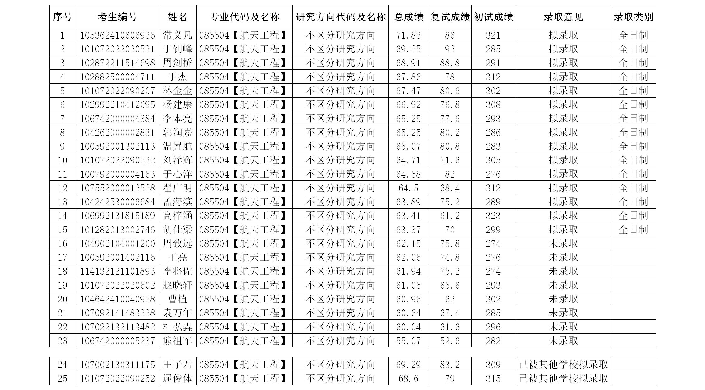 以上就是“2022考研擬錄取名單:北華航天工業學院航空宇航學院航天工程專業2022年碩士研究生第一批調劑考生復試綜合成績及擬錄取情況公示”的全部內容,更多錄取名單相關內容請持續關注本網站。
