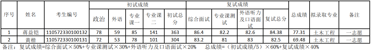 原文標題:2022年土木工程碩士研究生一志愿復試擬錄取名單