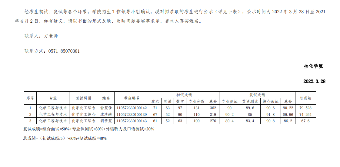 以上就是“2022考研擬錄取名單:2022年浙江科技學院生物與化學工程學院研究生招生擬錄取名單(一志愿)”的全部內容,更多錄取名單相關內容請持續關注本網站。