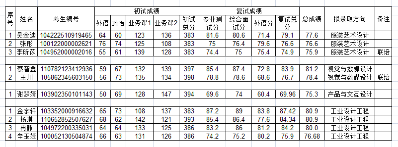 2022考研擬錄取名單:浙江科技學院藝術設計學院2022年碩士研究生擬錄取名單公示(調劑第二批)