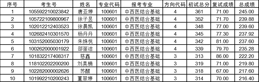 以上就是“2022考研擬錄取名單:長(zhǎng)春中醫(yī)藥大學(xué)2022年碩士研究生招生考試中西醫(yī)結(jié)合基礎(chǔ)學(xué)科調(diào)劑考生擬錄取公示”的全部?jī)?nèi)容,更多錄取名單相關(guān)內(nèi)容請(qǐng)持續(xù)關(guān)注本網(wǎng)站。