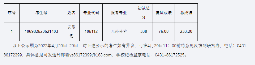 以上就是“2022考研擬錄取名單:長春中醫藥大學2022年碩士研究生招生考試臨床醫學院部分學科第一次調劑考生順次補錄公示”的全部內容,更多錄取名單相關內容請持續關注本網站。