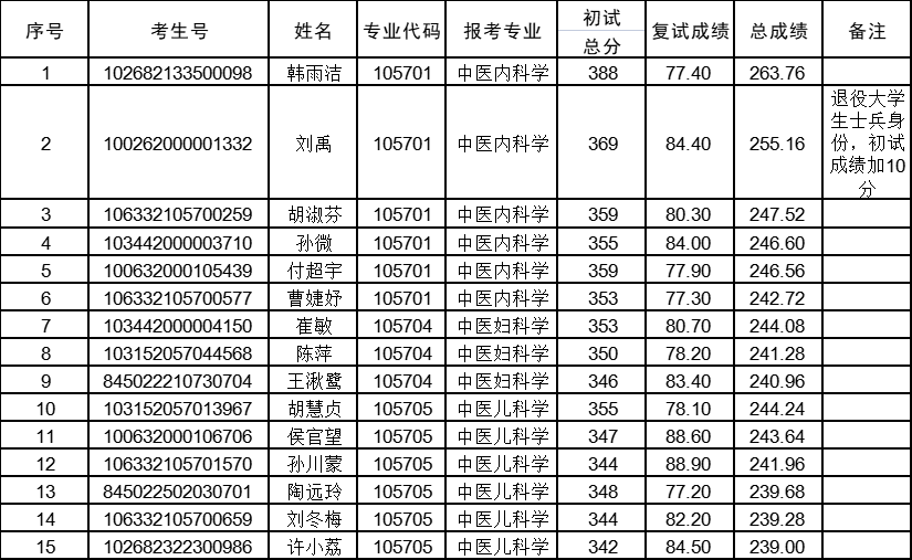 以上就是“2022考研擬錄取名單:長春中醫(yī)藥大學2022年碩士研究生招生考試中醫(yī)學院(吉林省中醫(yī)藥科學院第一臨床醫(yī)院)調劑考生擬錄取公示”的全部內容,更多錄取名單相關內容請持續(xù)關注本網站。