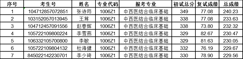 以上就是“2022考研擬錄取名單:長春中醫藥大學2022年碩士研究生招生考試中西醫結合臨床基礎學科調劑考生擬錄取公示”的全部內容,更多錄取名單相關內容請持續關注本網站。