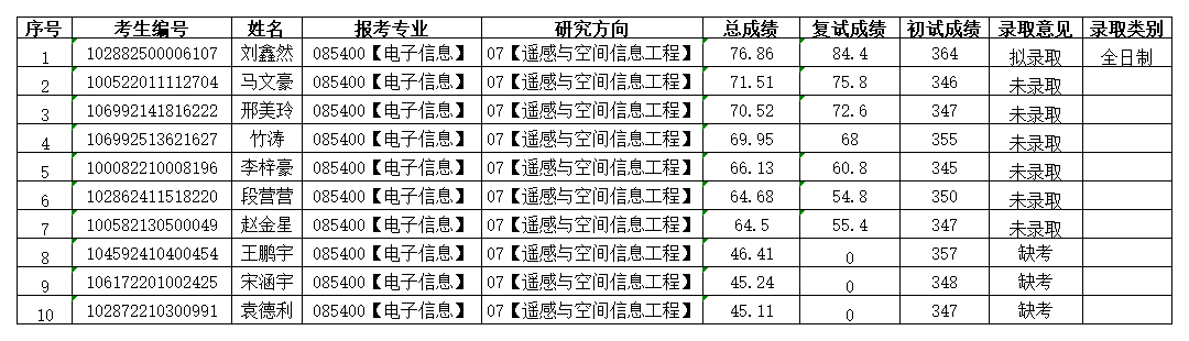以上就是“2022考研擬錄取名單:北華航天工業學院遙感信息工程學院電子信息專業2022年碩士研究生第三批調劑考生復試綜合成績及擬錄取情況公示”的全部內容,更多錄取名單相關內容請持續關注本網站。