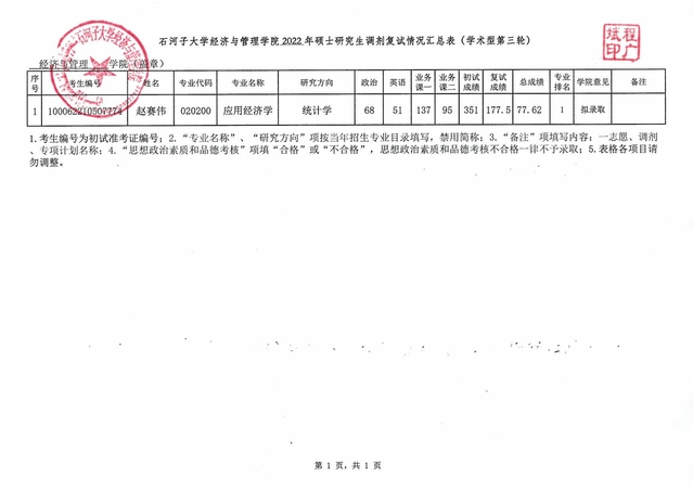 原文標題:2022年石河子大學經濟與管理學院碩士(學術型)研究生調劑復試情況公示(第三輪)