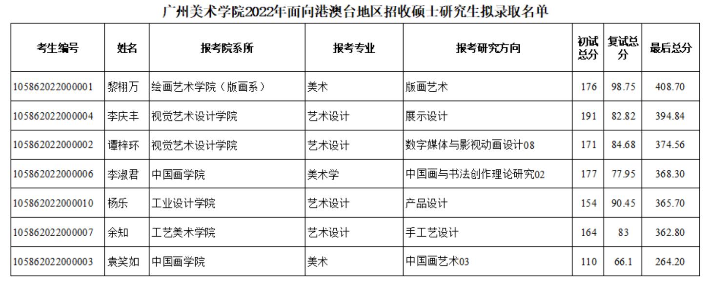 原文標題:廣州美術學院2022年港澳臺研究生招生考試擬錄取名單公示